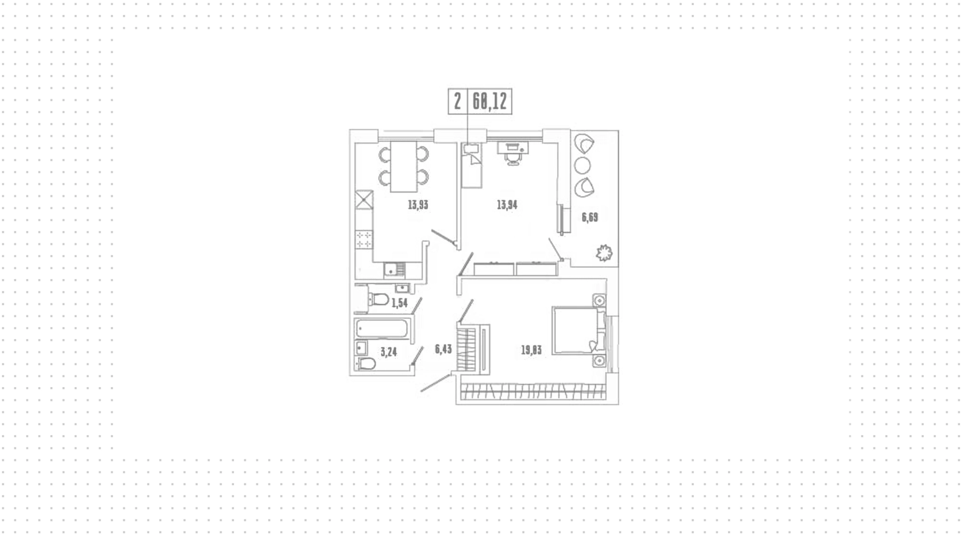 Апартаменты с 2 спальнями, 60 м²