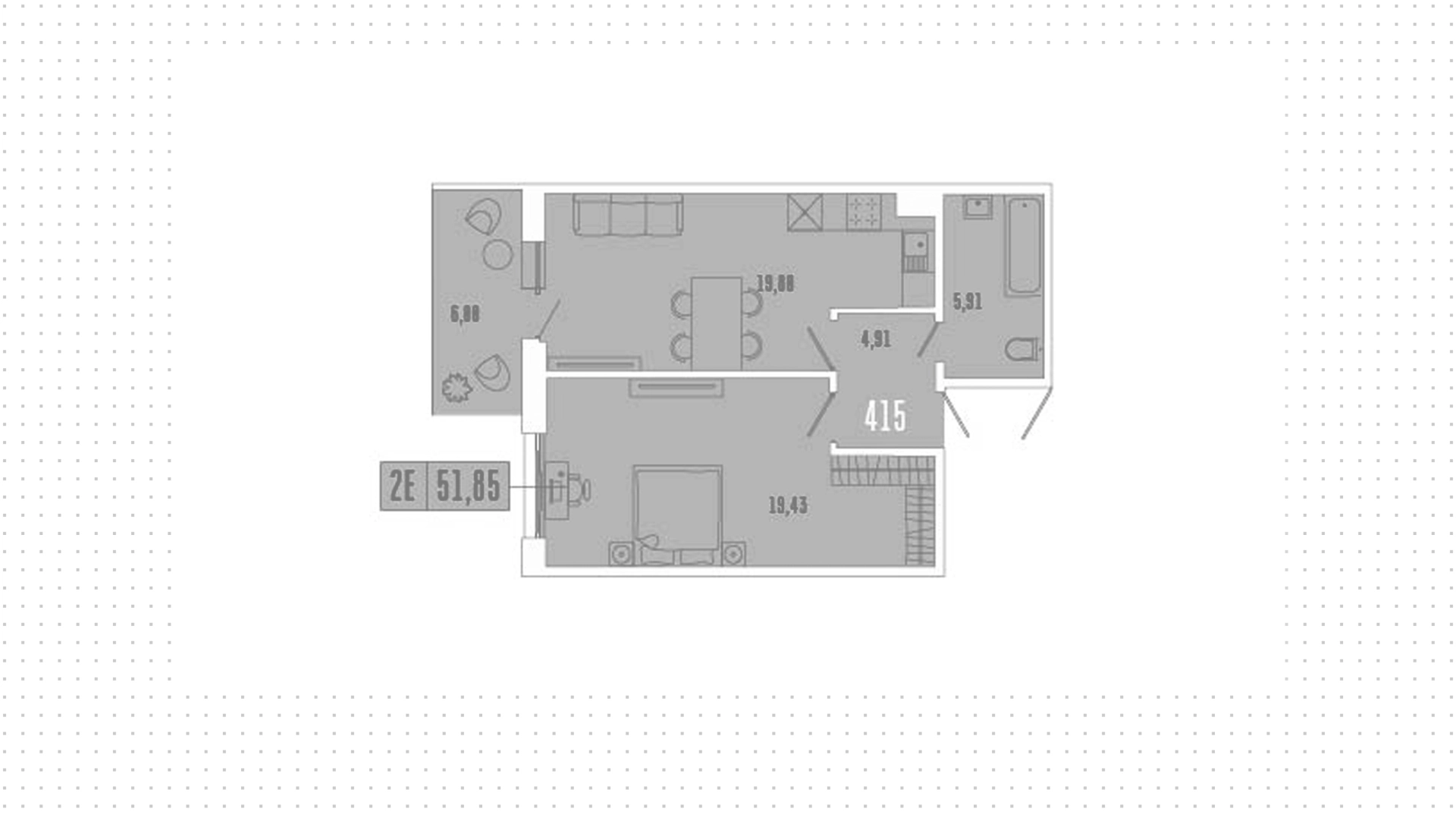 Апартаменты с 1 спальней, 51 м²