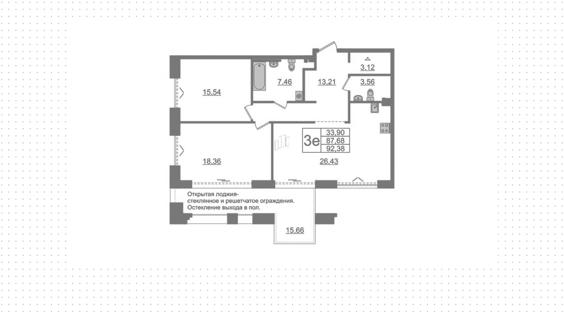 Квартиры c 2 спальнями, 87 м² в ЖК Imperial Club, 3 этаж