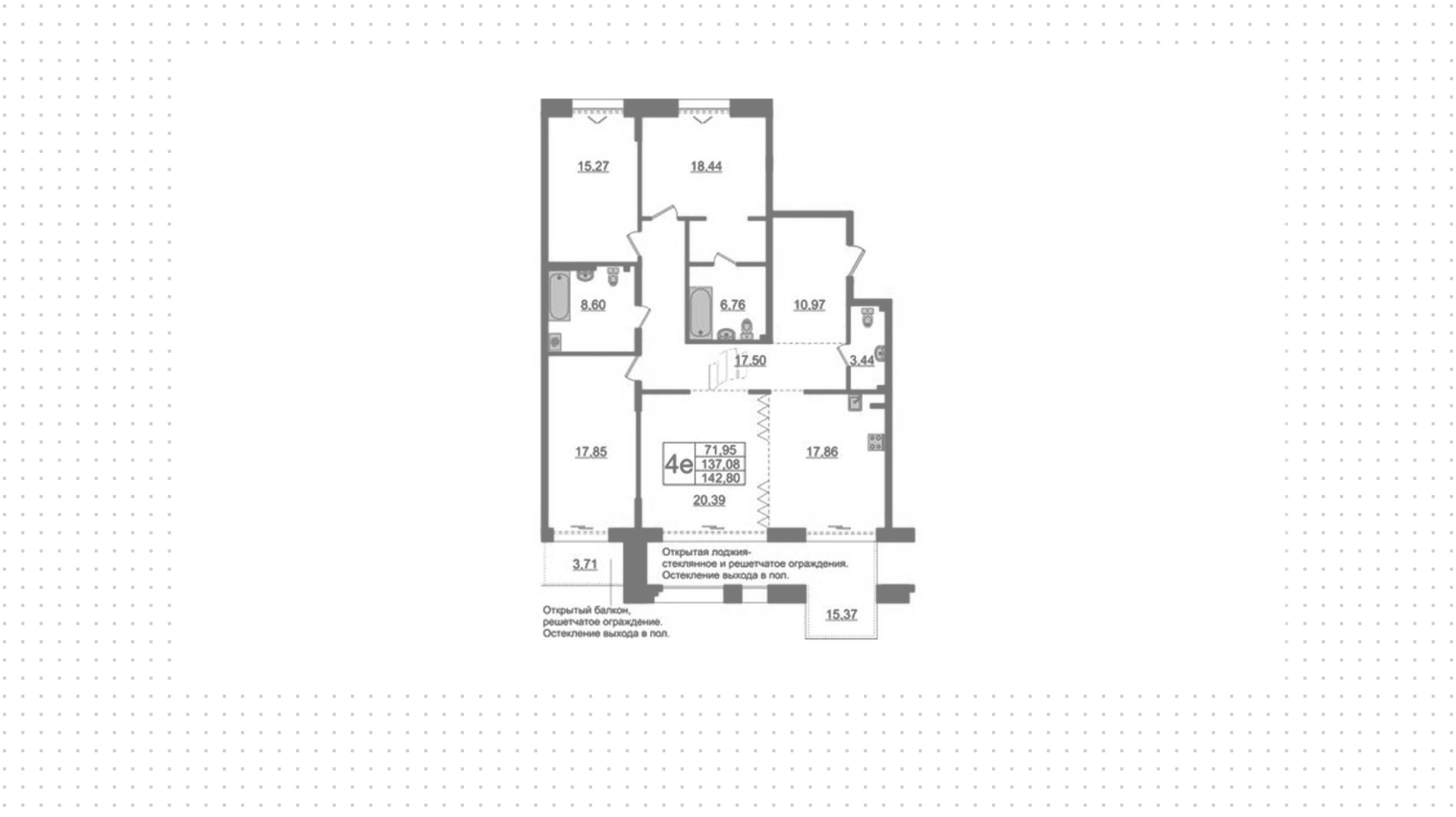 Квартиры c 4 спальнями, 137 м² в ЖК Imperial Club, 3 этаж