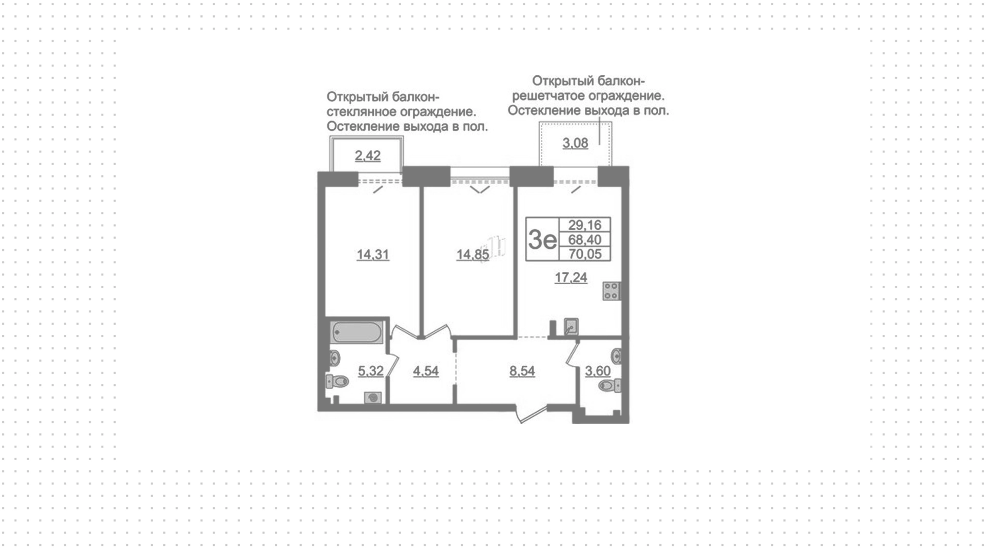 Квартиры c 2 спальнями, 68 м² в ЖК Imperial Club, 3 этаж