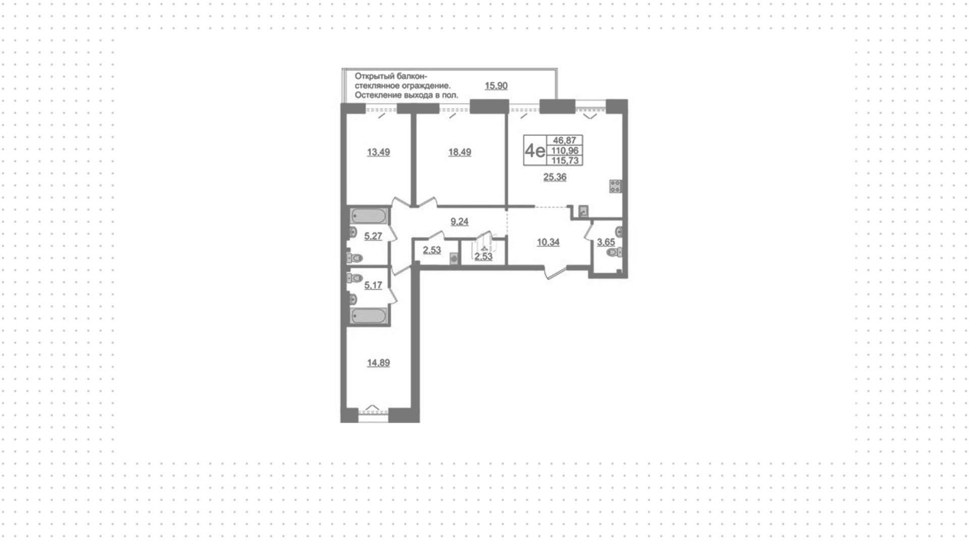 Квартиры c 3 спальнями, 110 м² в ЖК Imperial Club, 2 этаж