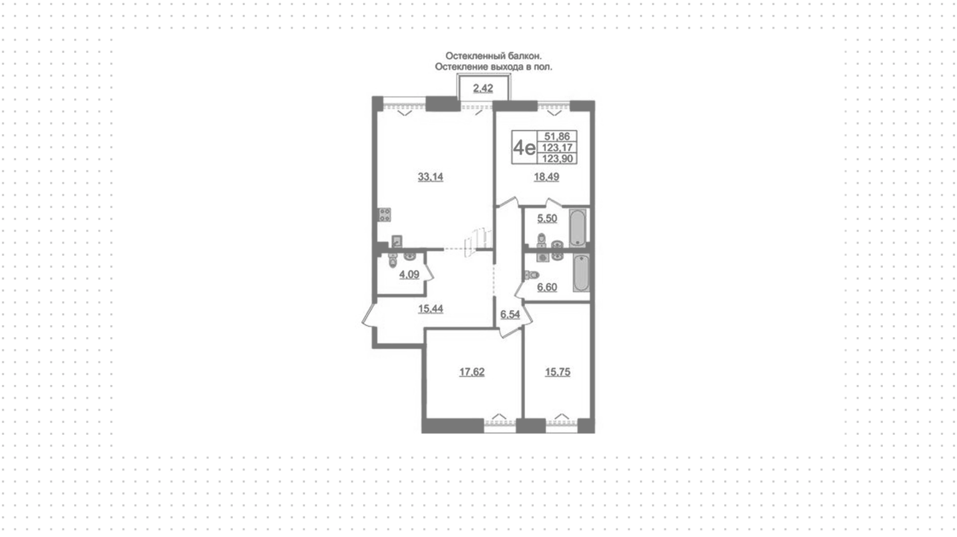 Квартиры c 3 спальнями, 123 м² в ЖК Imperial Club, 3 этаж