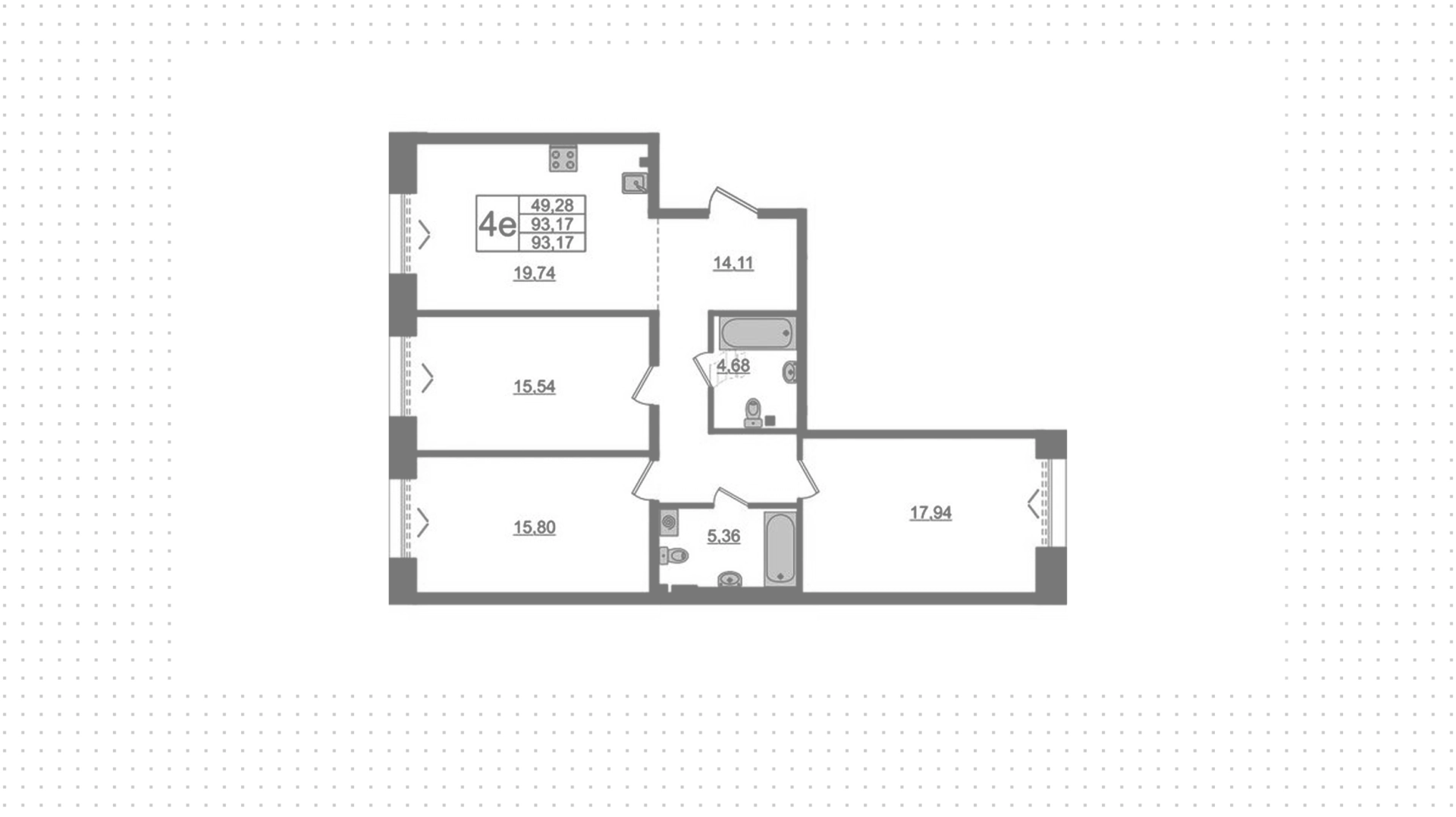 Квартира с 3 спальнями, 93 м²