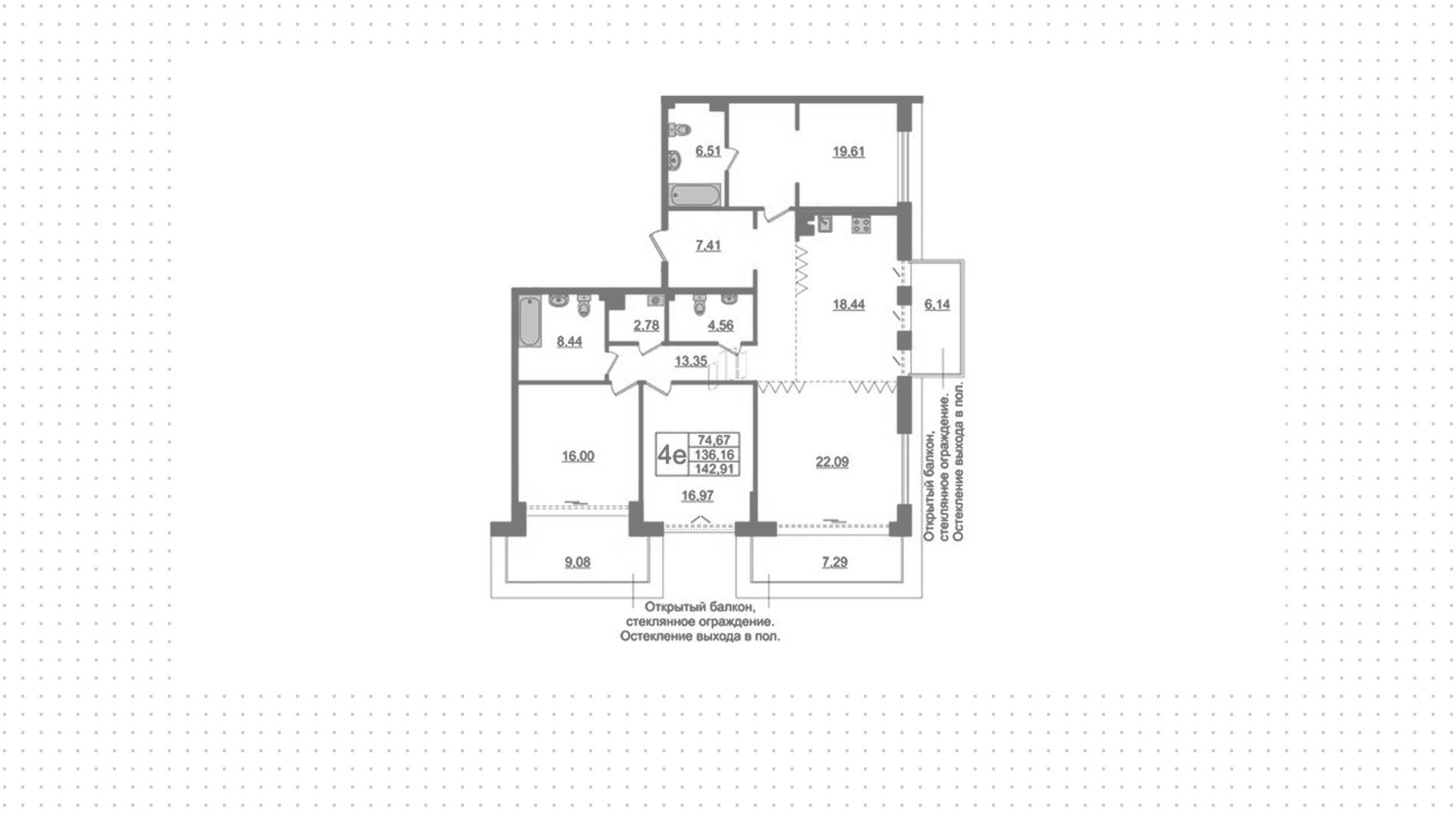 Квартиры c 4 спальнями, 136 м² в ЖК Imperial Club, 5 этаж