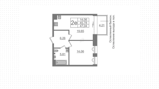 Квартиры c 1 спальней, 46 м² в ЖК Imperial Club, 3 этаж