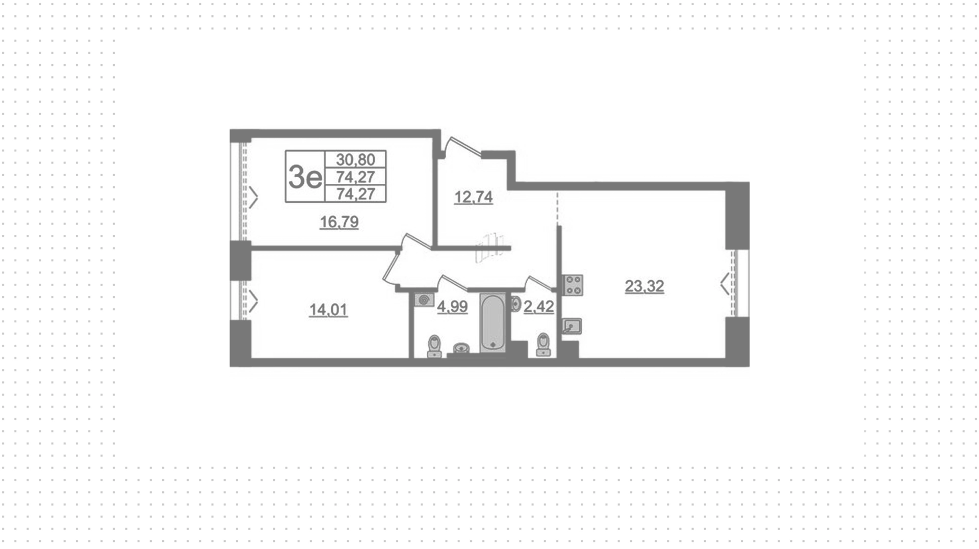 Квартиры c 2 спальнями, 74 м² в ЖК Imperial Club, 3 этаж