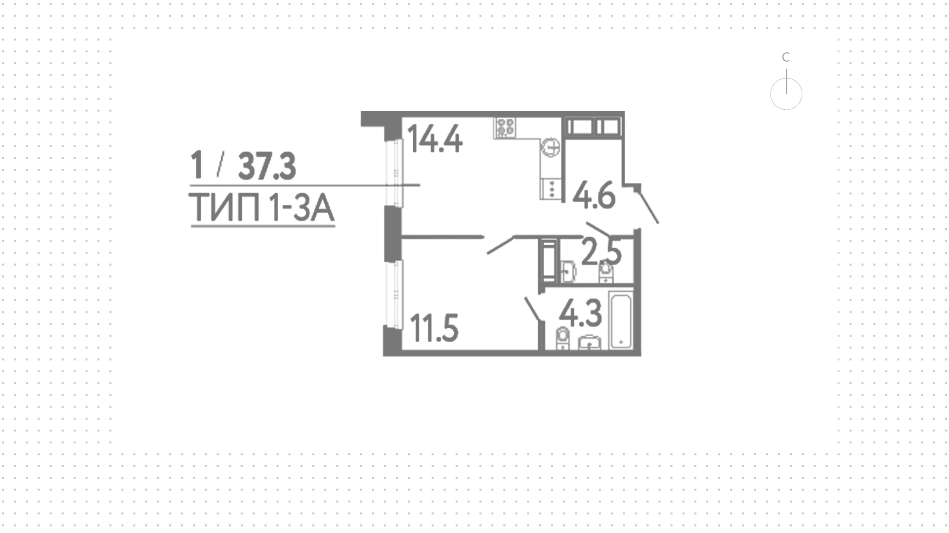 Квартира с 1 спальней, 37 м²