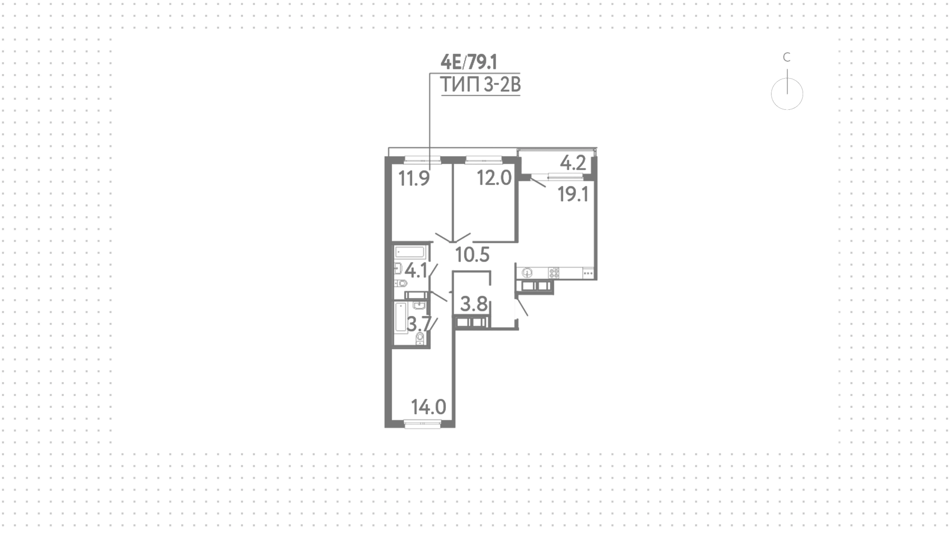 Квартира с 3 спальнями, 79 м²