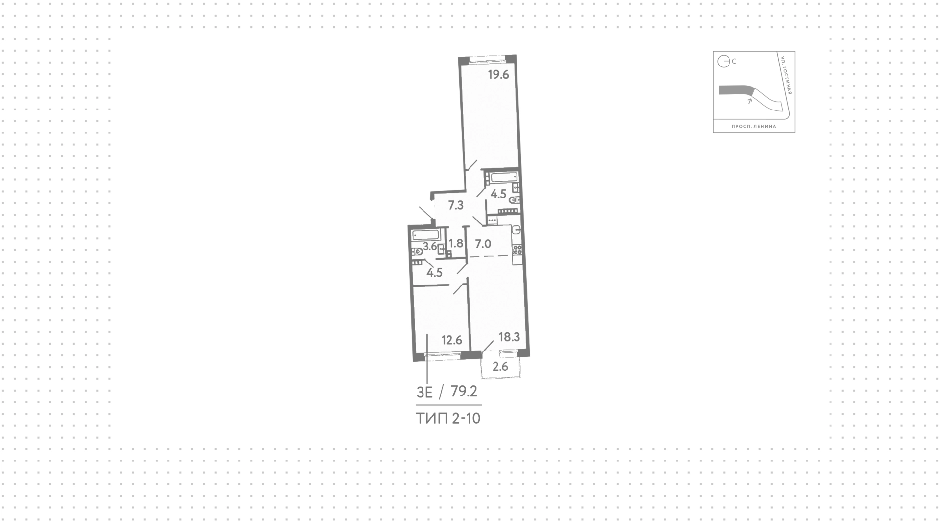 Квартира с 2 спальнями, 79 м²