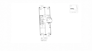 Квартира с 3 спальнями, 107 м²