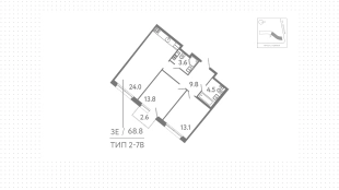 Квартира с 2 спальнями, 68 м²