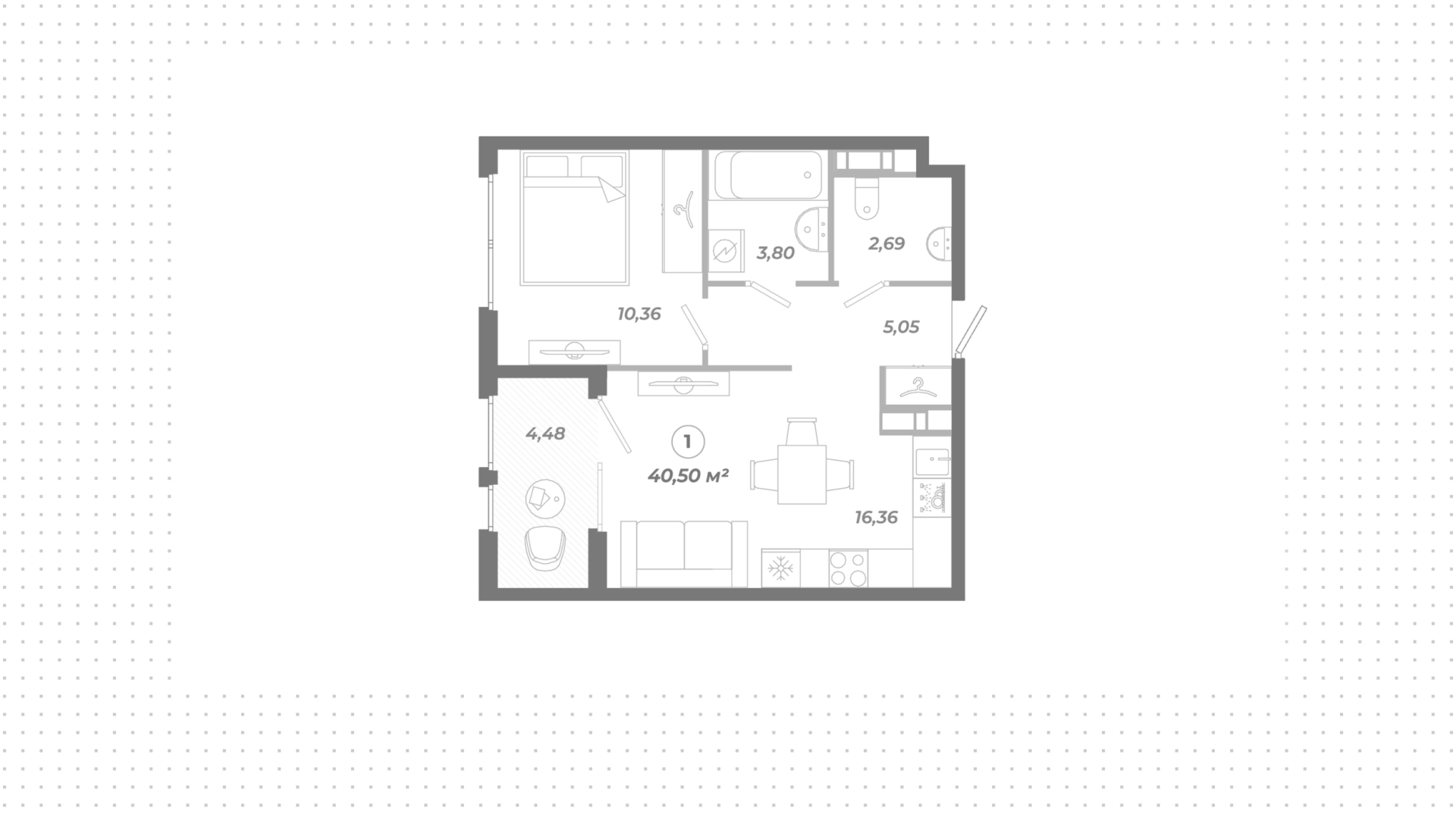 Квартиры c 1 спальней, 40 м² в ЖК Знатный, 6 этаж