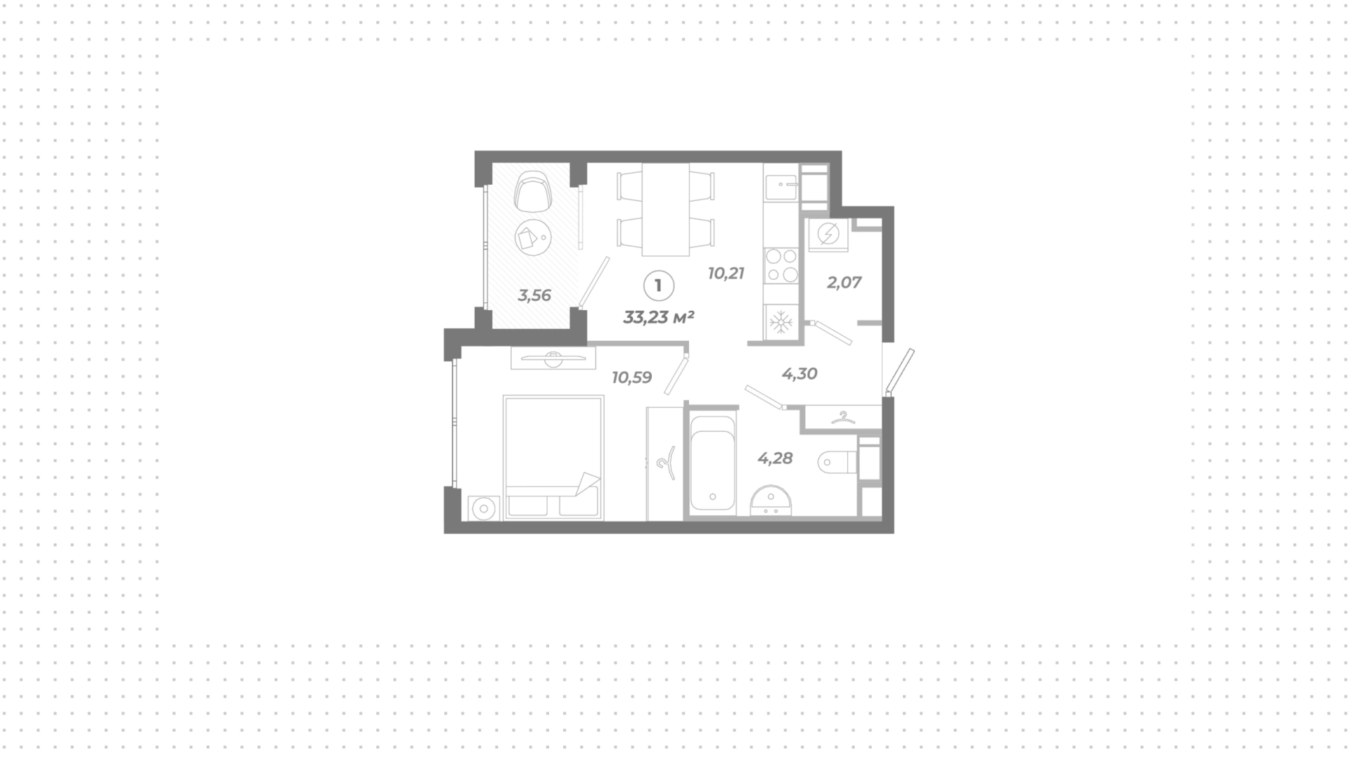 Квартира с 1 спальней, 33 м²