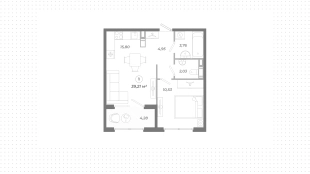 Квартира с 1 спальней, 39 м²