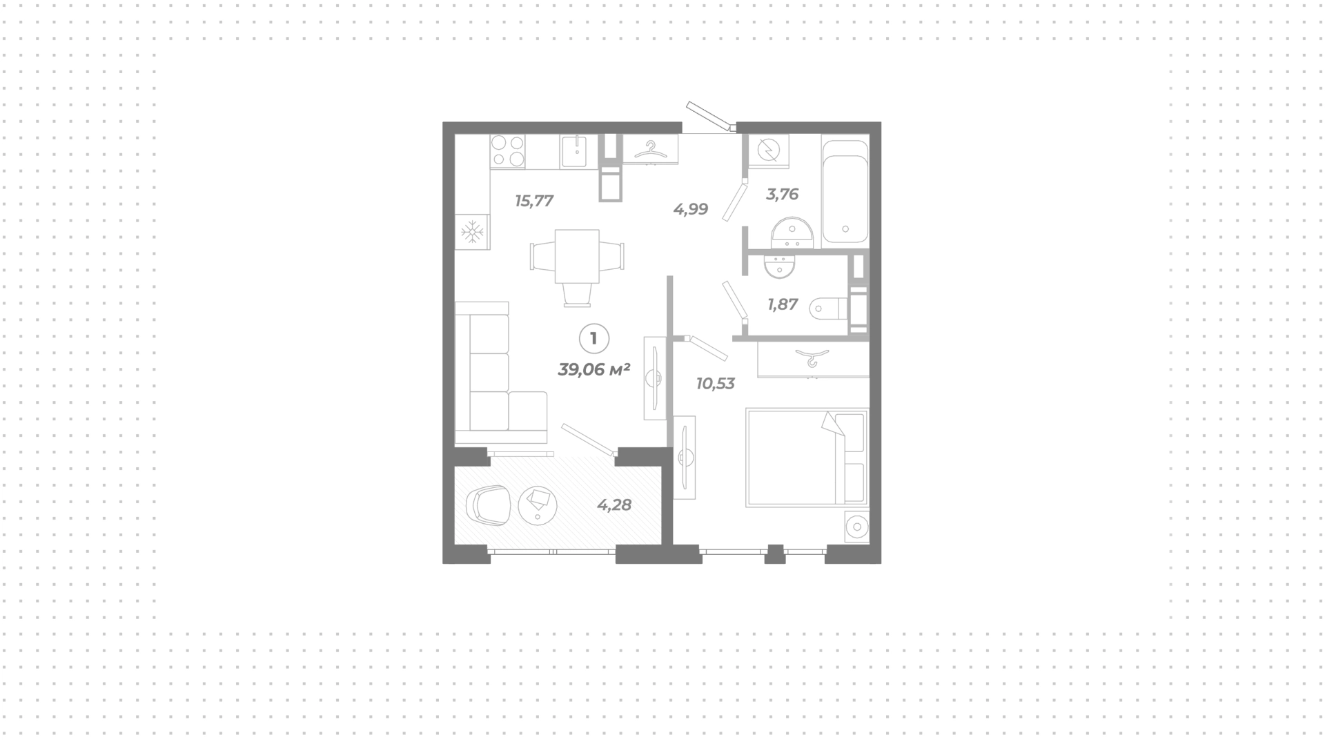 Квартиры c 1 спальней, 39 м² в ЖК Знатный, 12 этаж