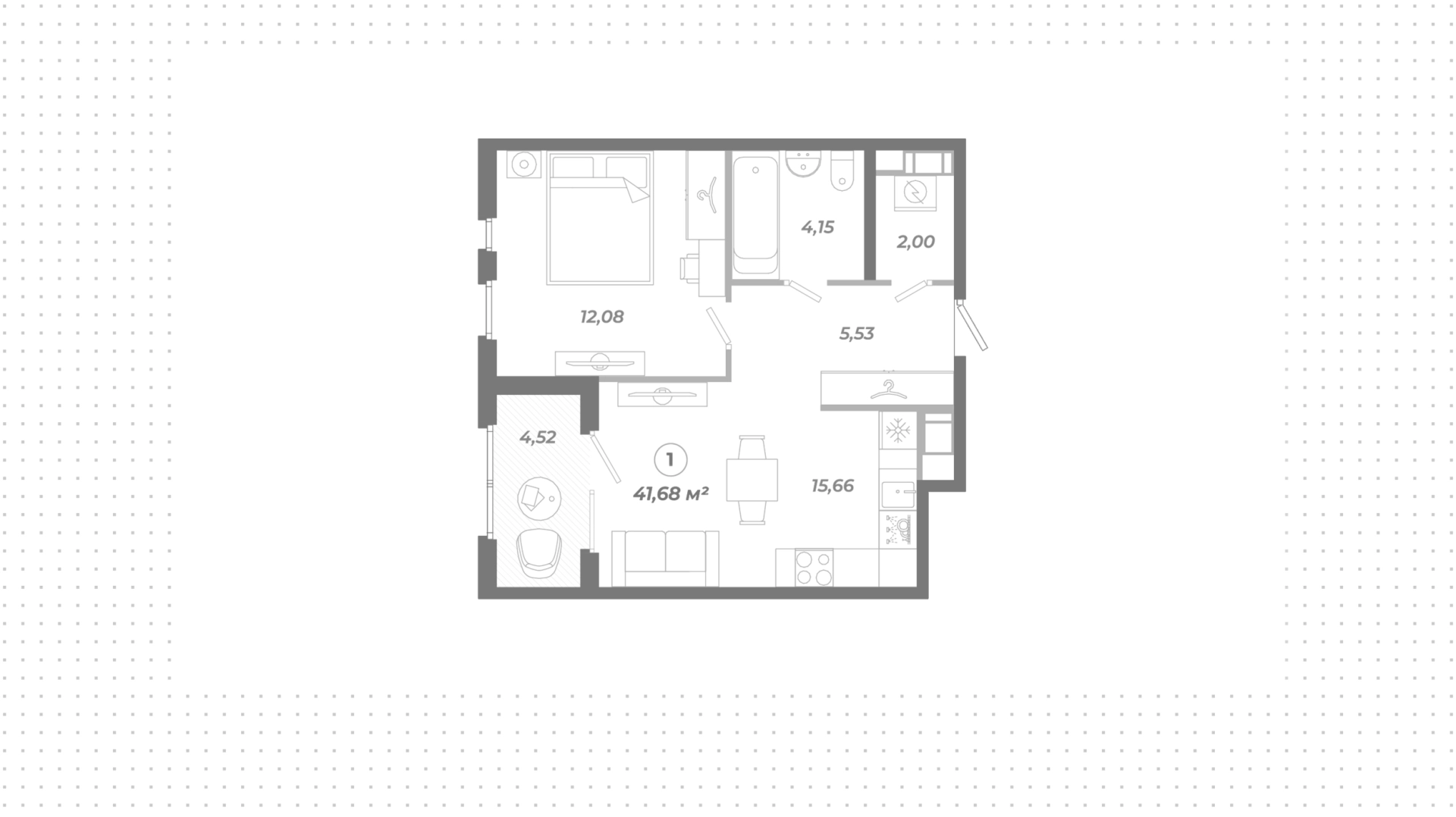 Квартиры c 1 спальней, 41 м² в ЖК Знатный, 5 этаж