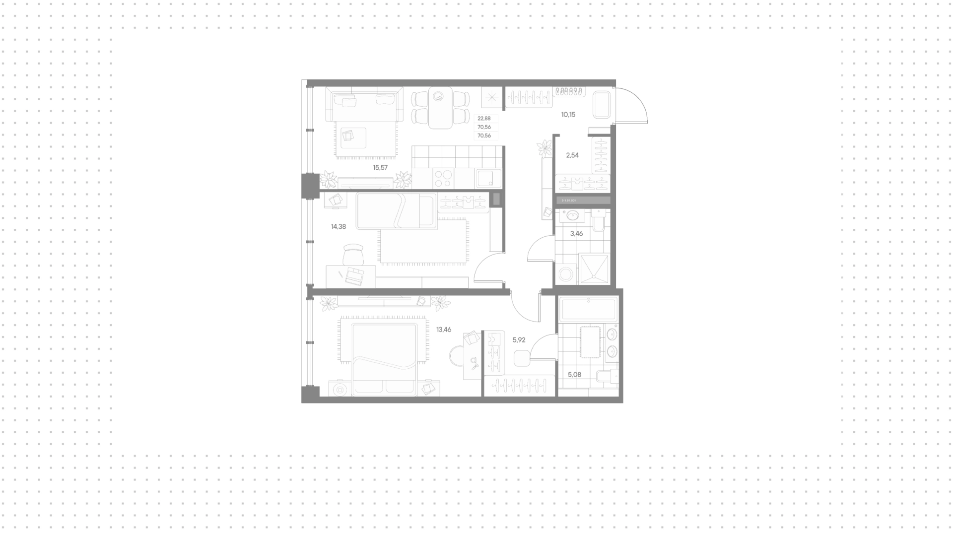 Квартира с 2 спальнями, 70 м²