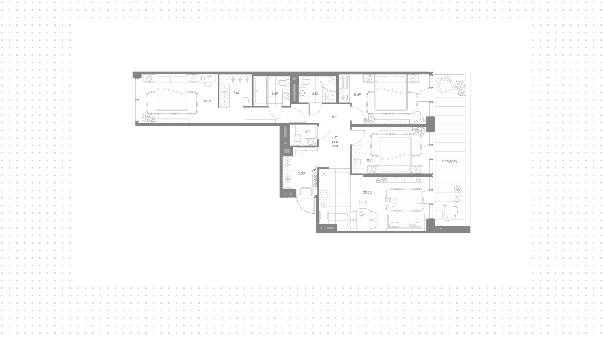 Квартира с 3 спальнями, 93 м²
