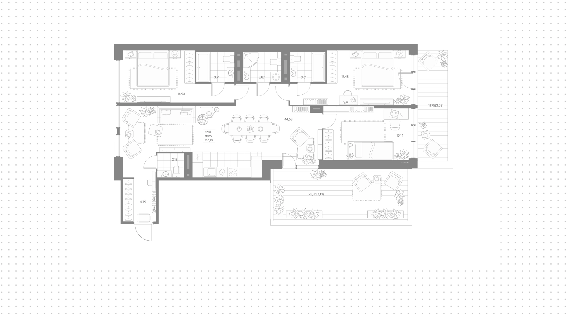Квартиры c 3 спальнями, 122 м² в ЖК Avant, 2 этаж