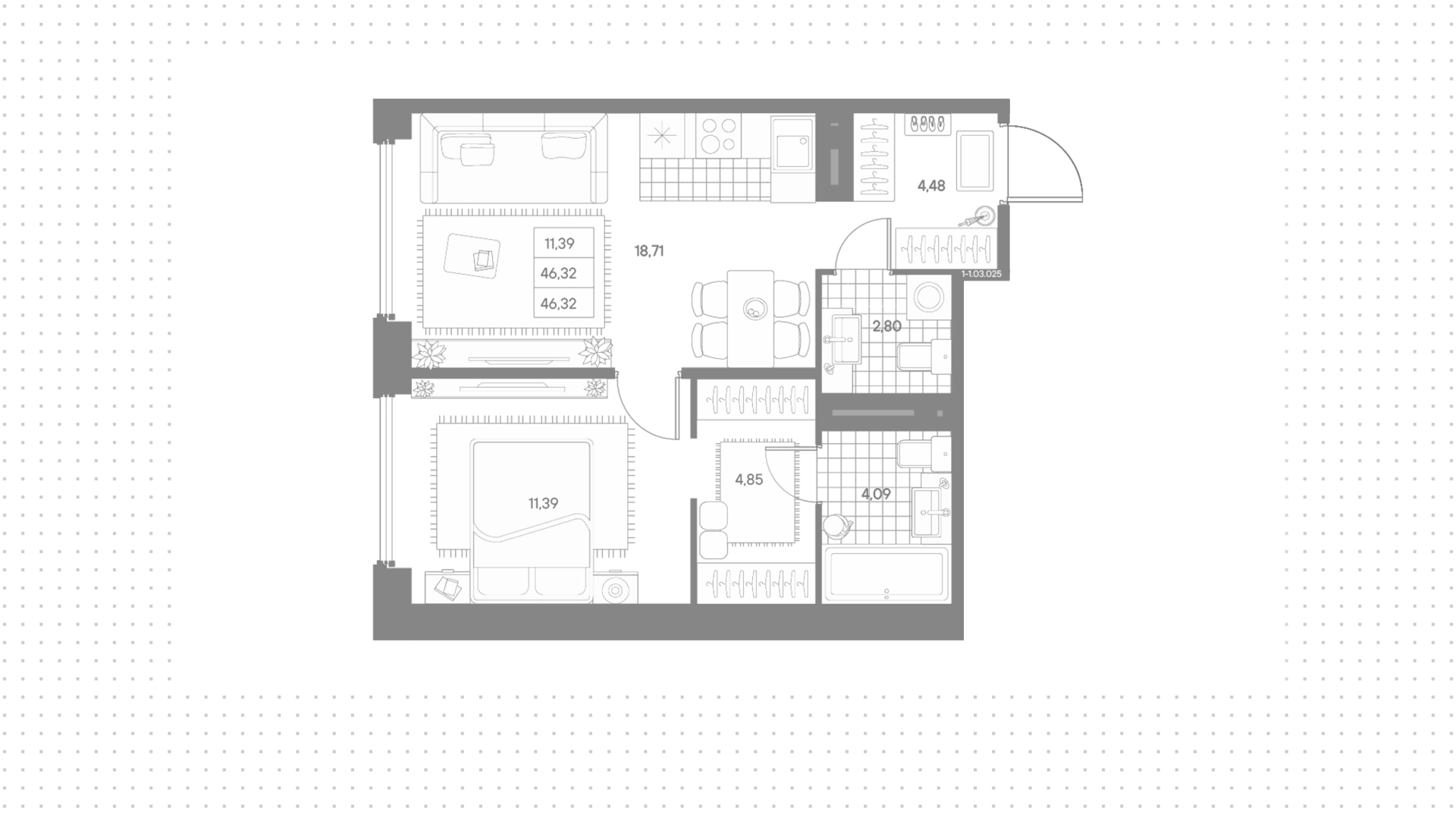 Квартиры c 1 спальней, 46 м² в ЖК Avant, 3 этаж