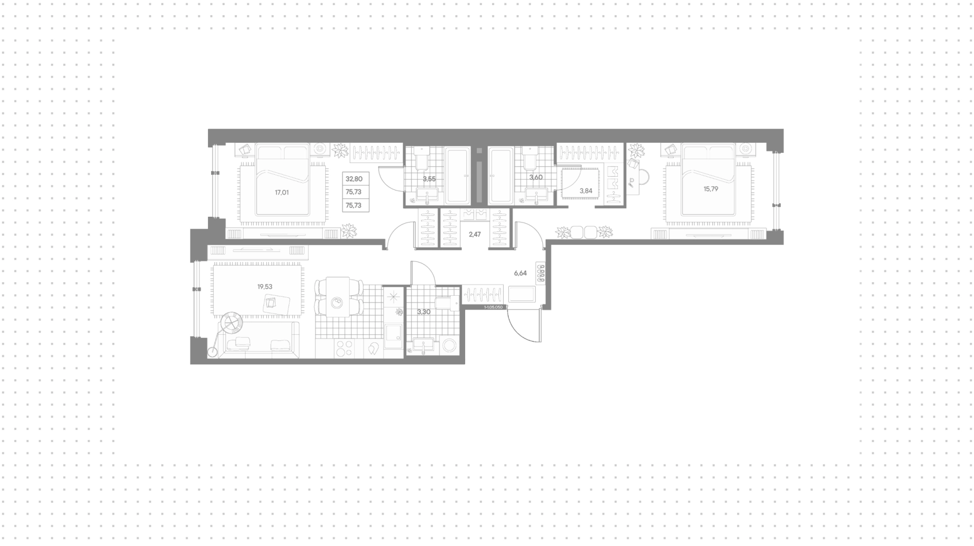 Квартиры c 2 спальнями, 75 м² в ЖК Avant, 5 этаж