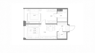 Квартиры c 1 спальней, 46 м² в ЖК Avant, 3 этаж