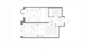 Квартиры c 1 спальней, 44 м² в ЖК Avant, 8 этаж