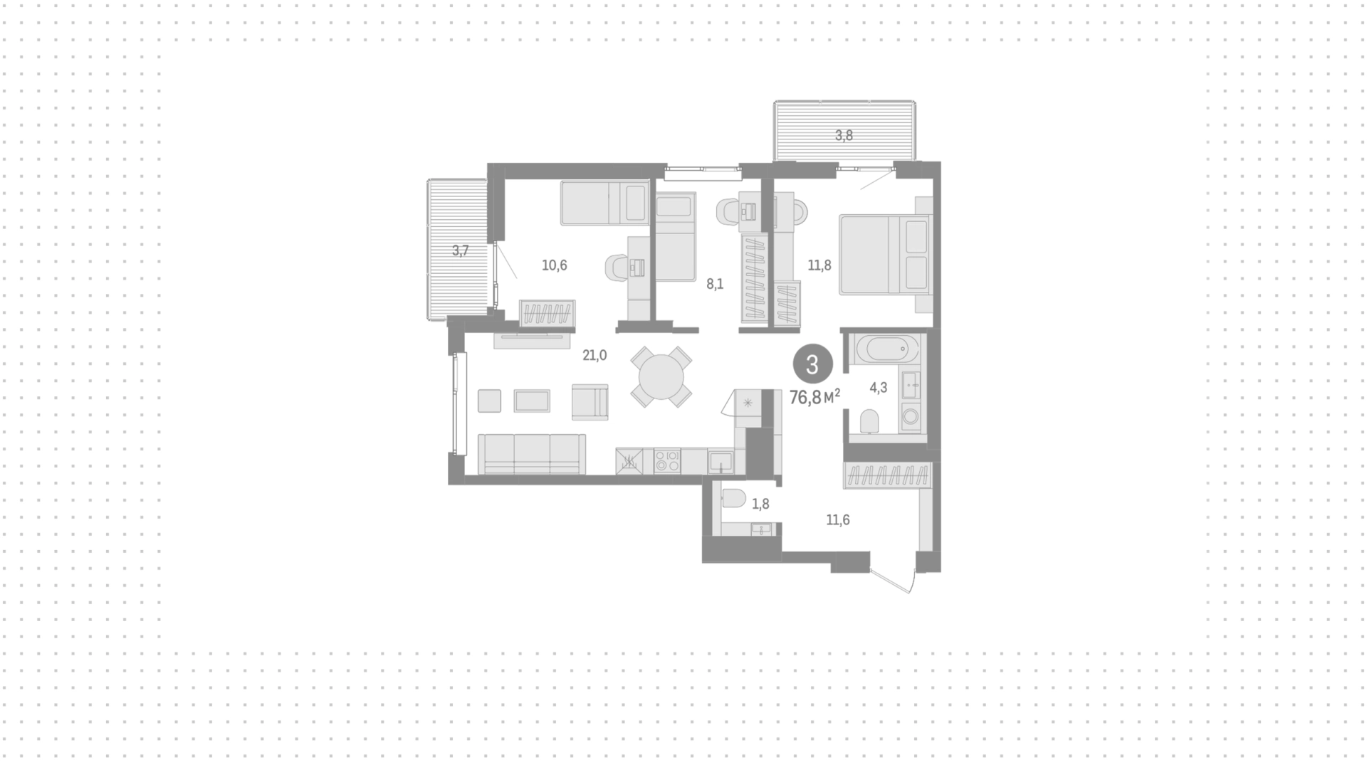 Квартиры c 3 спальнями, 76 м² в ЖК Северный ветер, 5 этаж