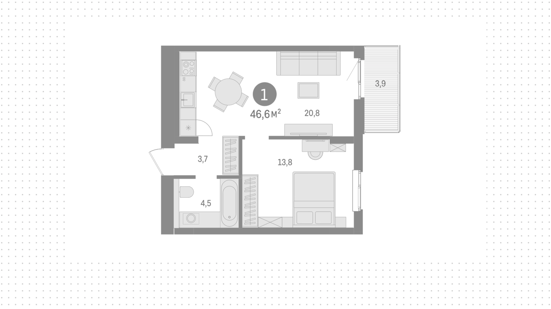 Квартиры c 1 спальней, 46 м² в ЖК Северный ветер, 5 этаж