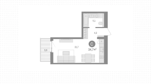 Квартиры, 34 м² в ЖК Северный ветер, 5 этаж