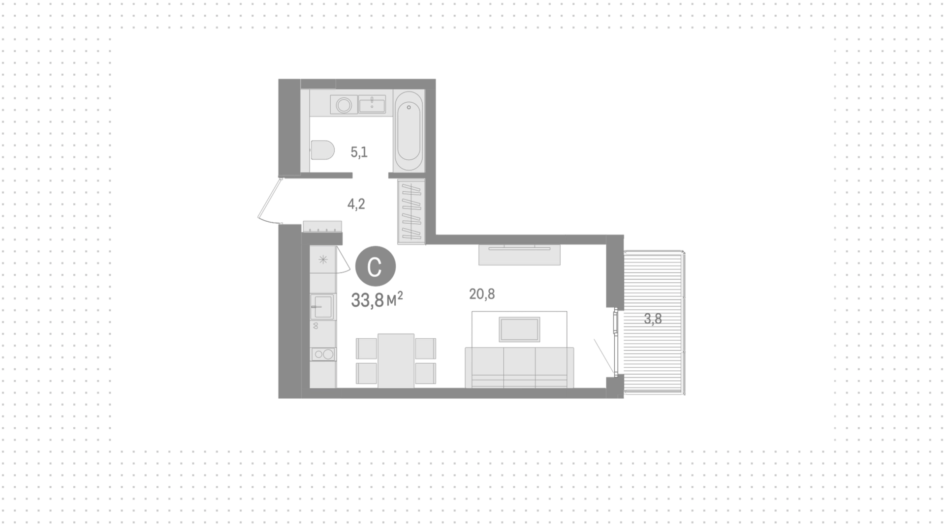 Площадь квартир в ЖК «Северный ветер» составляет от 27 до 159 м², высота потолков – до 3,3 м.