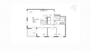 Квартиры c 3 спальнями, 100 м² в ЖК Струны, 22 этаж