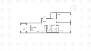 Квартиры c 2 спальнями, 61 м² в ЖК Струны, 3 этаж