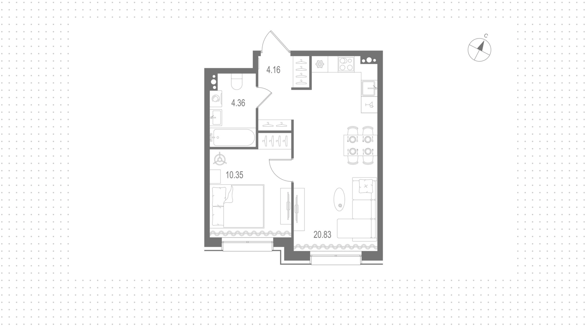 Квартиры c 1 спальней, 39 м², в ЖК Остров Первых, 5 этаж