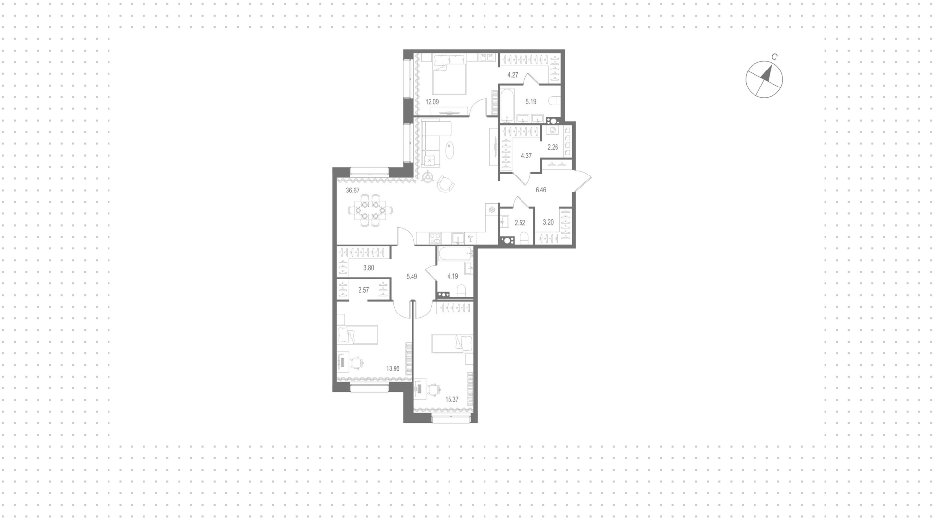Квартиры c 3 спальнями, 122 м², в ЖК Остров Первых, 5 этаж